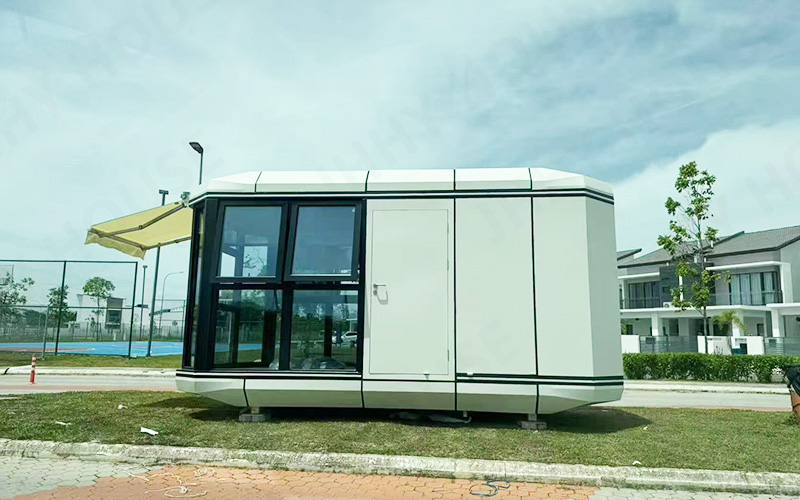 This project is a high-end customized space capsule guard booth exported to Malaysia, specifically designed for local commercial parks and outdoor security scenarios. The core product is based on our mature E30 series space capsule, which has been comprehensively upgraded and expanded from the standard structure to meet higher requirements for space, comfort, and functionality.