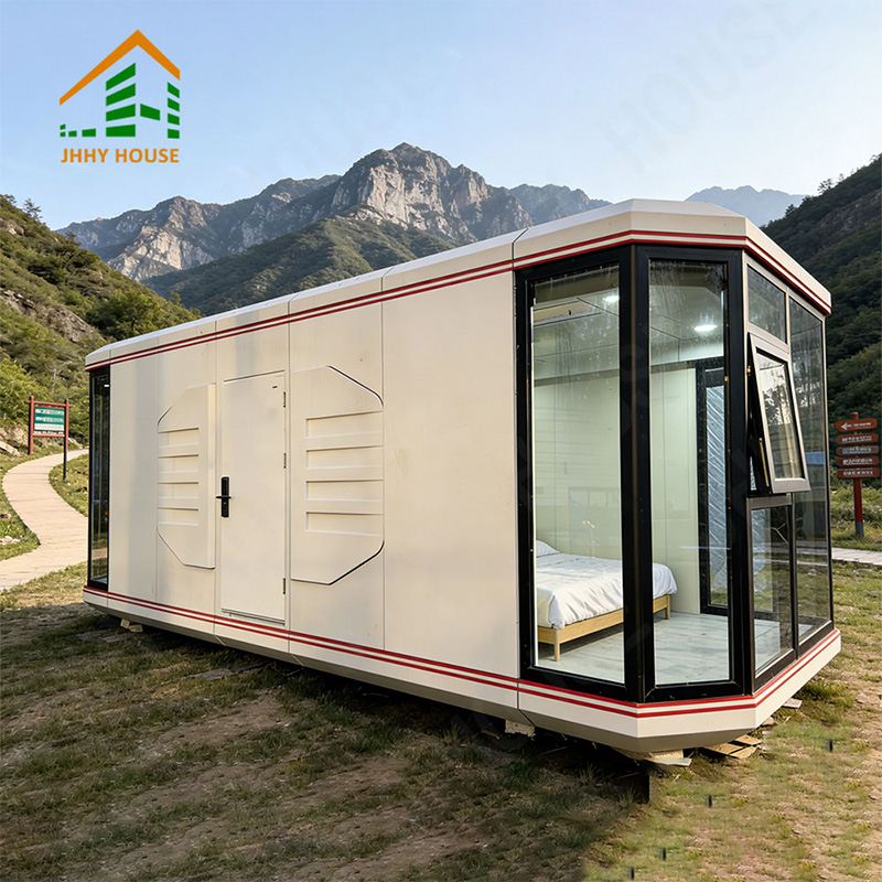 The main galvanized steel structural double frame Case aluminum plate (2.0mm) Shell surface treatment (fluorocarbon paint spraying process) 120mm polyurethane foam insulation Panoramic glass curtain wall (6+12A+6+12A+6 insulated low-e tempered glass) Panoramic glass oversized sunroof (6+6 laminated tempered glass+retractable canopy) Entry door (fire-rated steel door-with fingerprint waterproof combination lock) |